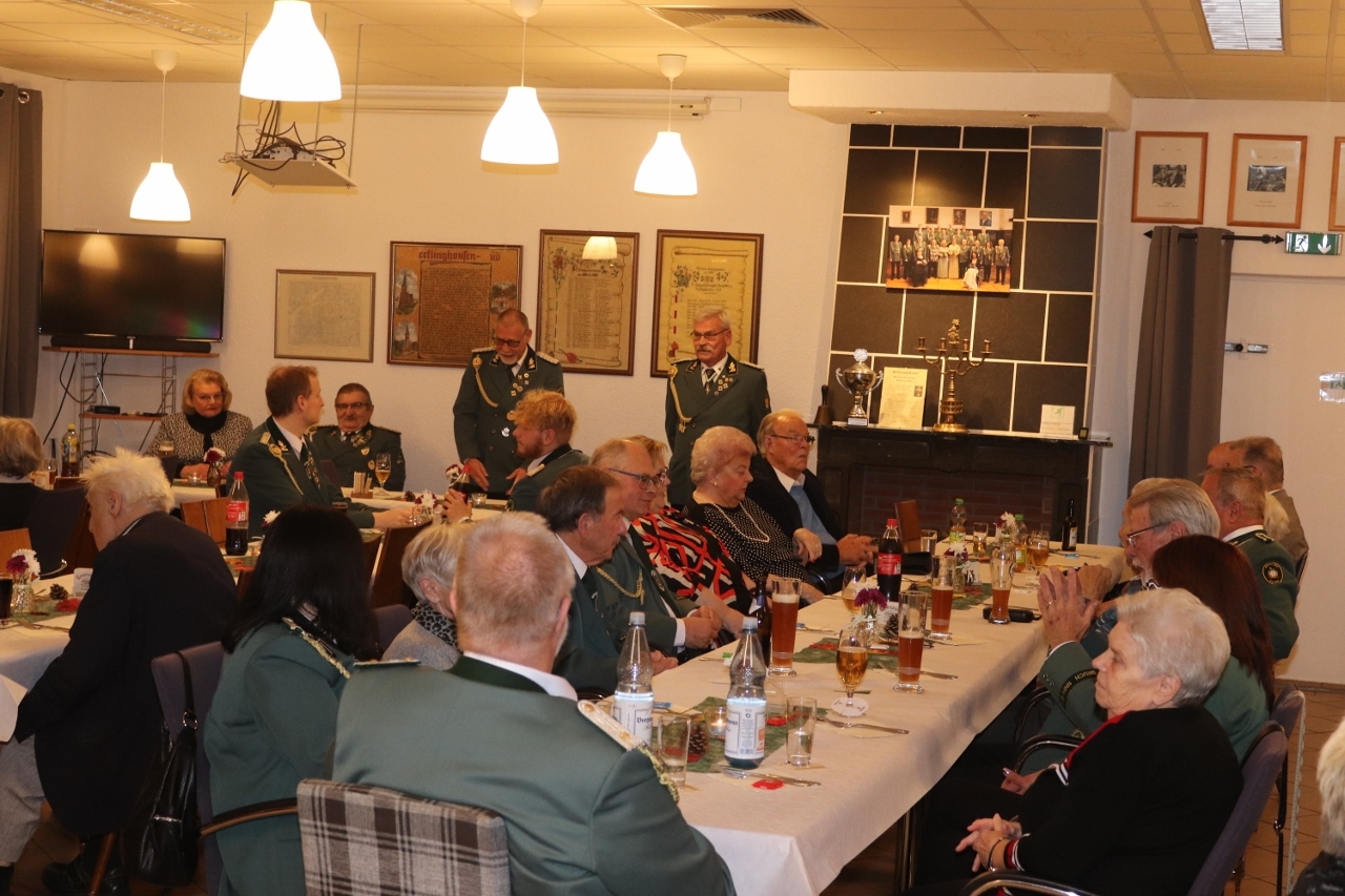 Die Veranstaltung wurde erneut in der bewährten Form durchgeführt. Das bedeutete, dass die grünen Schützenröcke - sofern vorhanden - nach den drei diesjährigen Schützenfesten sowie dem Zapfenstreich zu Ehren unseres scheidenden Bürgermeisters zu einem weiteren Einsatz kommen konnten. Alle Teilnehmerinnen und Teilnehmer konnten sich an diesem Abend zum einen am leckeren Grünkohl erfreuen, zum anderen aber auch an vielen guten und langen Gesprächen. Auch freuten wir uns darüber, dass wir bei dieser gewohnt harmonischen Veranstaltung wieder einige Gäste begrüßen konnten.